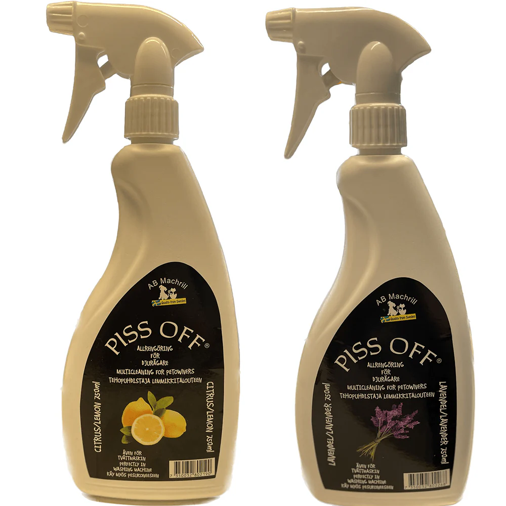 De frisheid van Citroen of Lavendel maakt het schoonmaken niet alleen effectief, maar ook aangenaam voor de zintuigen. Piss Off is dé standaard voor een hygiënische en frisse leefomgeving voor uw dieren. Kies voor veiligheid, reinheid en geur met Piss Off – probeer het vandaag nog!