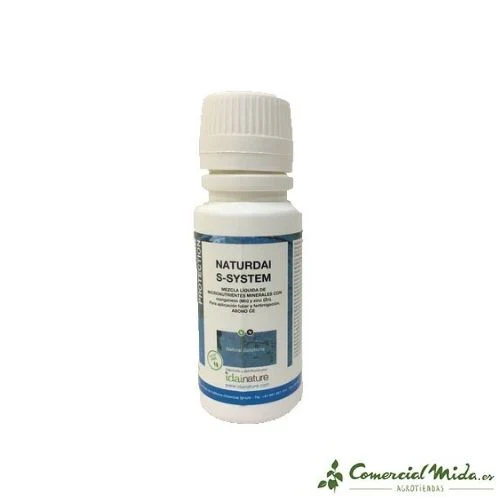 Naturdai S-System de Idainature es una solución natural elaborada a base de azufre líquido incoloro asimilable de forma completa en la planta debido a su tecnología HPC única. Esto hace que el total del azufre se absorba a través de la superficie vegetal pasivamente sin suponer un gasto energético para las plantas. Este producto es incorporado a los vasos de las planta que favorece la formación de defensas vegetales, estas contribuyen a prevenir problemas ocasionados por agentes adversos.