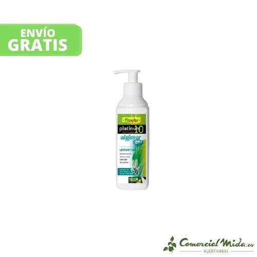 El gel universal Algimar Platinum 10 de Flower es un tipo de abono líquido de fácil aplicación. Es usado para dar vigor y revitalizar todo tipo de plantas debilitadas o con falta de fuerza y consistencia. Gracias a sus componentes, como el extracto de algas marinas, aportan vitaminas y nutrientes esenciales para un crecimiento óptimo de las plantas más delicadas. Las algas marinas incorporan Ascophyllum nodosum, la planta marina más activa a nivel biológico y nutricional. La fórmula de este fertilizante líquido es muy rica en nutrientes y aminoácidos muy beneficiosos para el bienestar vegetal.