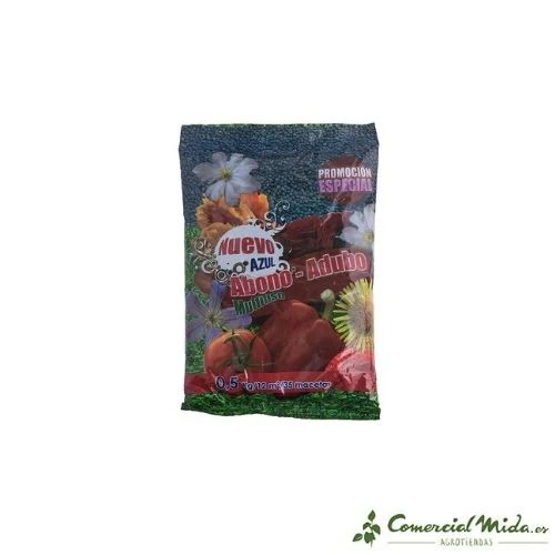 Abono universal azul en formato de pequeños gránulos, para el cuidado y fertilización de todo tipo de plantas y cultivos.