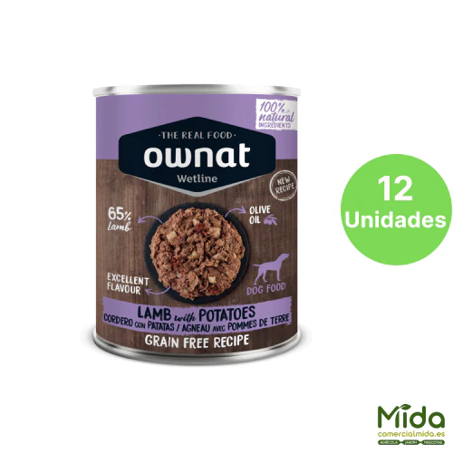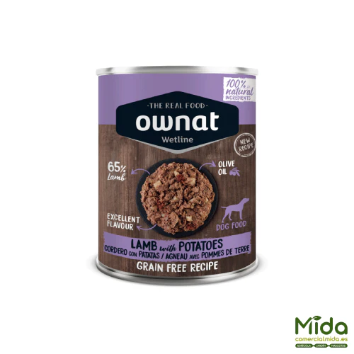 OWNAT Wetline Lamb With Potatoes, fórmula mantiene un perfil simple y directo, con cordero como ingrediente principal, acompañado de patata como fuente de carbohidratos de fácil digestión. Es una alternativa interesante para dietas de rotación, perros con paladar exigente o estrategias de alimentación mixta (húmedo + seco).