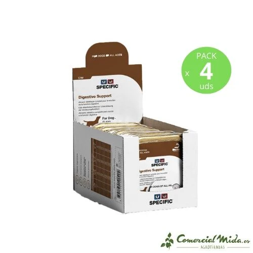 Digestive Support CIW de Specific es un alimento húmedo para perros de todas las razas que padecen alteraciones digestivas como colitis, insuficiencia pancreática, mala digestión, mala absorción así como trastornos digestivos crónicos o agudos que provocan diarreas, vómitos y flatulencias. Esta comida tiene un elevado nivel de digestibilidad que favorece su ingesta en las mascotas. Su formulación incluye un alto contenido de minerales y vitaminas liposolubles que ayudan a favorecer los síntomas de los trastornos digestivos. Contribuye a reforzar las defensas digestivas gracias a la fibra soluble mientras que la yuca reduce la producción de gases y el olor de las heces.