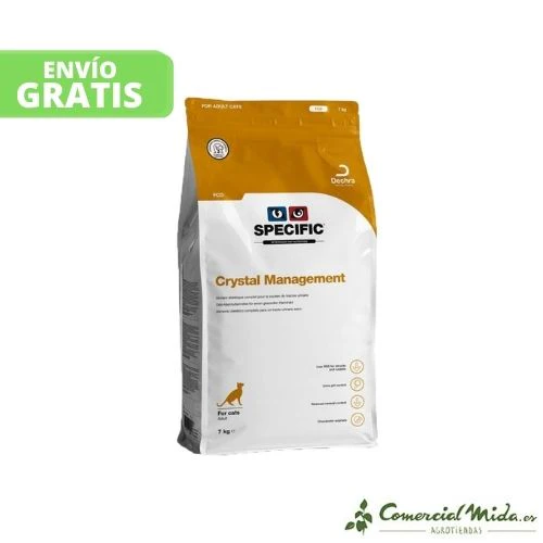 El alimento seco Crystal Management FCD de Specific es un pienso que contribuye a prevenir la recurrencia de cálculos de estruvita y oxalato de calcio. Este tipo de alimentación cuenta con un nivel moderado de sodio que hace que sea una administración segura durante un tiempo prolongado. Puede ofrecerse a gatos adultos. Este tipo de alimentación ayudará a mejorar el bienestar del animal al evitar los cálculos y las molestias que estos ocasionan en la mascota.