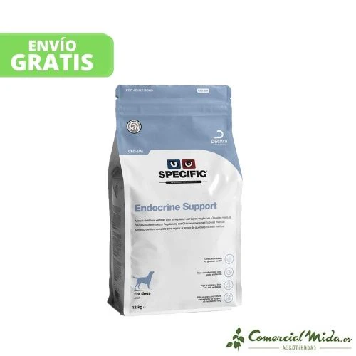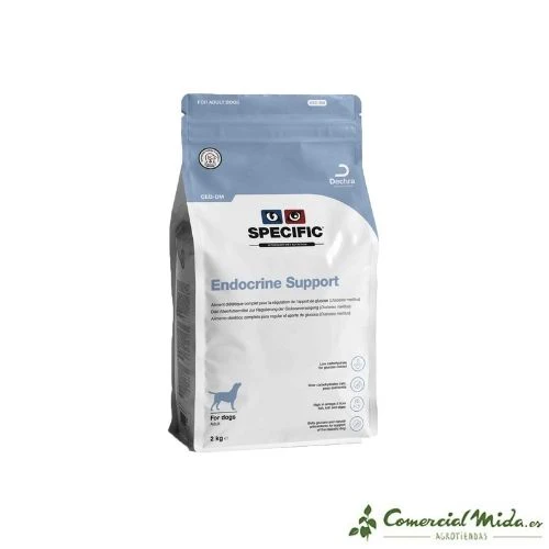 El alimento seco Endocrine Support CED-DM de Specific es un pienso que sirve como apoyo nutricional a perros con diabetes y otros trastornos endocrinos como el hipotiroidismo o la enfermedad de Cushing. Está elaborado con avena de trigo integral, ingredientes de índice glucémico bajo pero con un elevado nivel de fibra y aceites de pescado Omega 3. Este alimento ayudará a controlar los niveles de glucosa y brindará el máximo apoyo para que el animal goce de un estado de salud inmejorable. En nuestra tienda tenemos este pienso disponible en tres formatos.