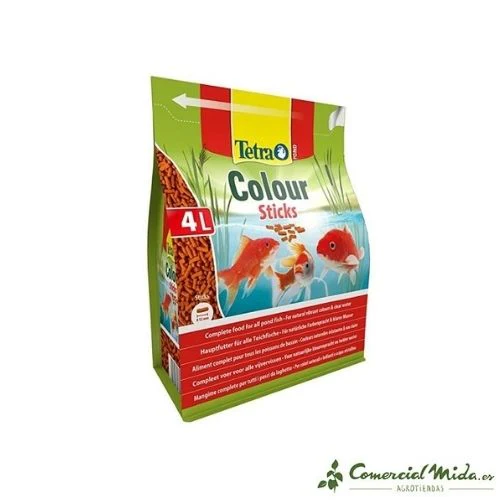 El alimento para peces de estanque Pond Color Sticks de Tetra es un tipo de comida en forma de barritas que ayuda a potenciar las tonalidades intensas de todos los peces de estanque. La receta incluye nutrientes, minerales, oligoelementos y vitaminas que garantizan una nutrición equilibrada y completa. Uno de los componentes principales de esta fórmula son los carotenoides, que mejoran de forma natural la pigmentación roja, amarilla y naranja. Gracias al alto porcentaje de nutrientes, este alimento completo flotante es muy fácil de digerir. Los resultados son visibles tras pocas semanas después de su administración regular en la dieta habitual de los peces.