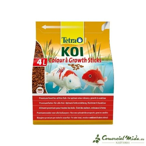 El alimento Pond Koi Sticks de Tetra es un alimento completo de calidad superior para todos los Koi que garantiza que la nutrición de estos peces sea saludable y biológicamente equilibrada. Las barritas flotantes permiten que la alimentación sea seminatural adaptada a los hábitos alimentarios de las carpas. Favorece el tracto digestivo y que el sistema inmunitario del animal sea fuerte y esté lleno de vitalidad. La administración de este alimento a los peces supondrá la aportación de nutrientes, vitaminas y oligoelementos esenciales. Además potencia el color natural de los peces.