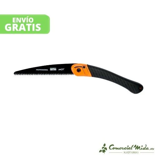 El serrucho de poda de Bahco es una herramienta de corte especialmente diseñada para realizar las podas de invierno y cortar madera verde en huertos y viñedos. Garantiza un corte rápido y limpio, gracias a su dentado japonés. Este serrucho plegable permite el corte perfecto de maderas blandas. El mango está fabricado en plástico bi-componente muy resistente y que proporciona un agarre cómodo. Este serrucho de poda es fácil de limpiar y manejar. Dispone de un botón de bloqueo de seguridad en posición abierta y cerrada que se acciona entre el final del filo y la agarradera.