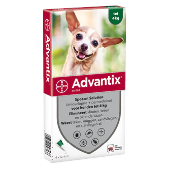 Advantix doodt vlooien en teken bij contact. Dat betekent dus dat je hond niet hoeft te worden gebeten voordat de werkzame bestanddelen hun werk doen. Advantix werkt ook tegen muggen, zandvliegen en stalvliegen. Het middel is verkrijgbaar als waterbestendige’ spot-on behandeling voor kleine honden, grote honden en puppy’s vanaf 7 weken oud. Het is een eenvoudige oplossing waarmee je je huisdier tot 4 weken tegen parasieten beschermt.