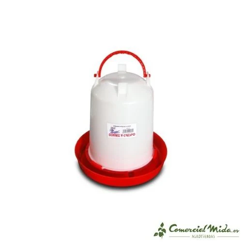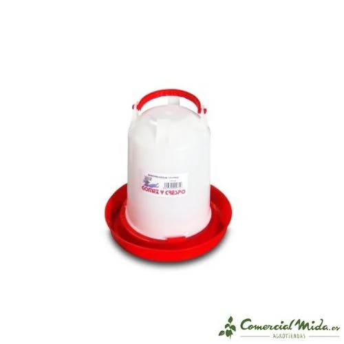 El bebedero de plástico de Gómez y Crespo con asa es un recipiente con una capacidad de 1.5, 3 o 6 litros que permite almacenar y ofrecer agua limpia a las aves de manera automática y autónoma. De esta manera, siempre que el cubo tenga agua los animales podrán saciar su sed. Este tipo de cuenco es ideal para abastecer de agua a las aves de corral como los pollos, gallinas, pavos, gansos o patos. Cuenta con un asa que facilita su traslado cuando se quiere cambiar la ubicación del artículo o colgarlo de algún altillo para evitar el contacto con el suelo y la presencia de bichos o animales que puedan ensuciar el agua. El bebedero está fabricado en plástico resistente libre de componentes tóxicos y su limpieza es fácil y sencilla.
