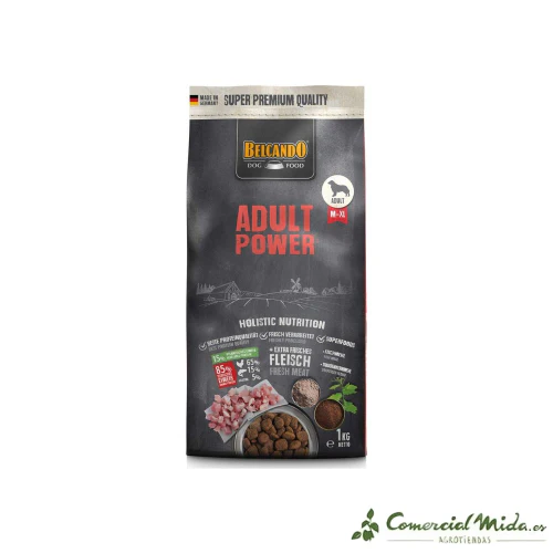 Belcando ADULT POWER es un alimento premium formulado específicamente para perros con un alto nivel de actividad y para hembras en gestación y lactancia. La combinación de ingredientes seleccionados con altos niveles de proteínas y grasas proporciona la energía necesaria para perros que requieren un rendimiento superior en trabajo, deporte o actividades recreativas. Además, es ideal para hembras al final del embarazo y durante la lactancia debido a su alta concentración de nutrientes.