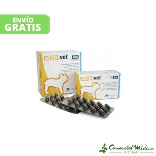 Atopivet Cápsulas es un tratamiento para perros que se emplea para combatir la dermatitis atópica canina porque mejora la fortaleza de la barrera dérmica, disminuyendo los síntomas de la enfermedad (el prurito y la inflamación) y calmando su piel. Atopivet es un tratamiento con excelentes opiniones entre los profesionales veterinarios porque reúne eficacia y evita los efectos secundarios.