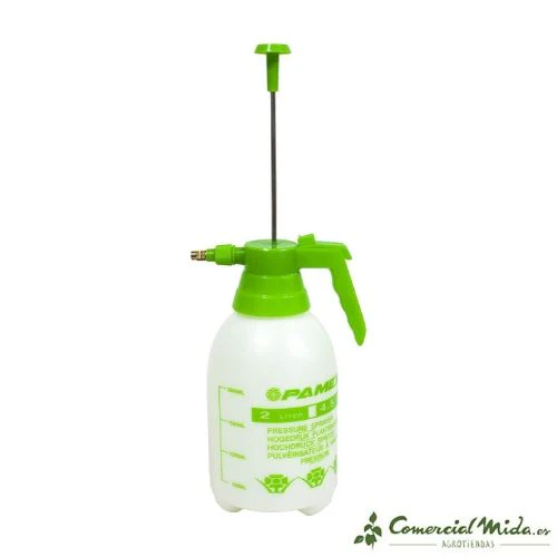 La botella pulverizadora a presión PAMEX permite humedecer y aplicar tratamientos fitosanitarios en jardines, huertos y hogar con extrema facilidad de uso y excelentes resultados. Puede utilizarse sólo con agua o con mezclas de polvo mojable, líquidos y cualquier otro producto soluble y aplicable mediante pulverización. Es la alternativa profesional a los pulverizadores manuales tradicionales y un excelente fumigador para preparados de lejía y desinfectantes para limpieza de superficies en terrazas, bares o cafeterías.