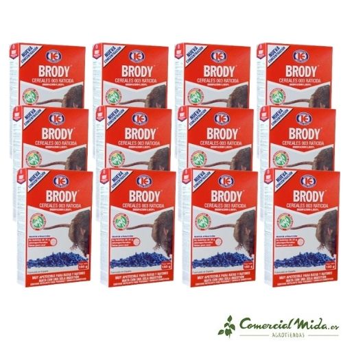 Dit rattengif is zeer eenvoudig te gebruiken, je hoeft alleen het lokaas uit de doos te halen, het in de lokaasstation te plaatsen en te wachten tot het effect heeft. De knaagdieren zullen worden aangetrokken door de geur en smaak van het gif en zullen de dagen daarna met slechts één inname vallen. De werkzame stof van het graanlokaas Brody Cereales, de Brodifacoum, een van de meest gebruikte pesticiden van vandaag, zal zorgen voor de totale eliminatie van muizen- en rattenplagen.