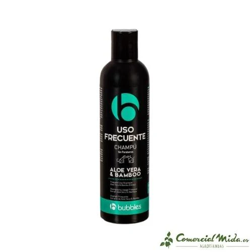 El Champú para Perros y Gatos de Uso Frecuente de Bubbles está diseñado para perros que por cualquier circunstancia necesiten baños adicionales. Su fórmula de PH equilibrado y con extractos naturales de Aloe Vera y Bambú protege el pelaje y proporciona un efecto refrescante.