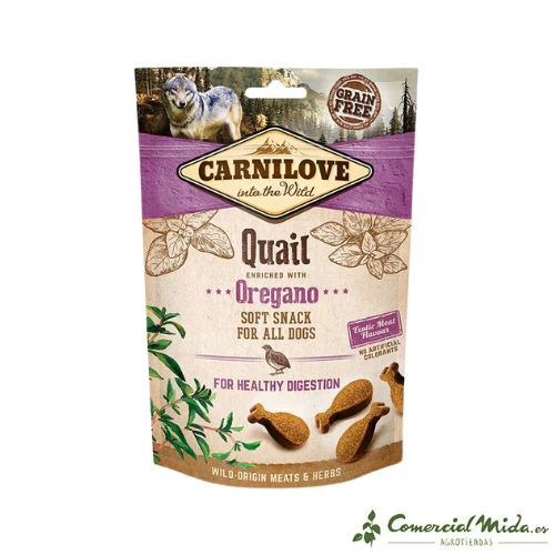 Snack semihúmedo con codorniz y orégano Carnilove Canine.