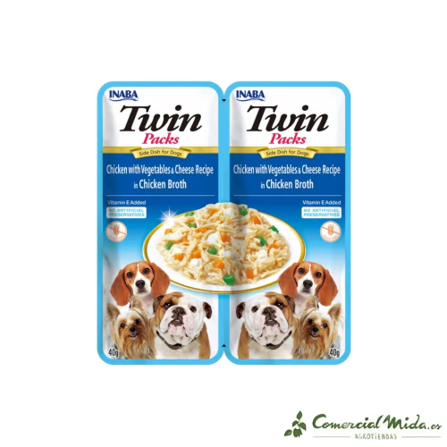CHURU PERRO TWIN PACKS Pollo con Guiso de Verduras y Queso en Caldo de Pollo, El mejor alimento complementario para perros de INABA