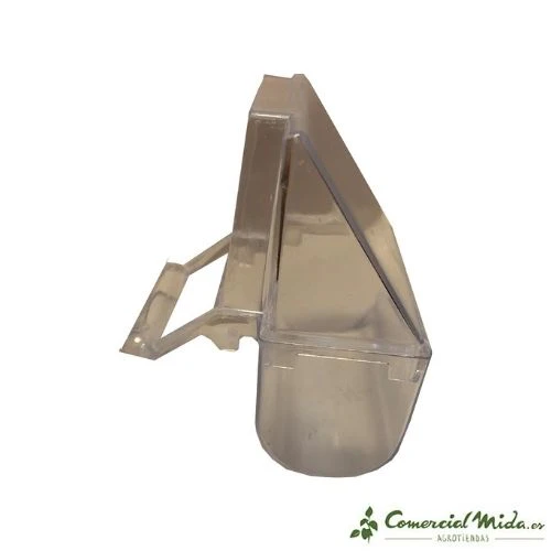 Comedero transparente para administrar el alimento a los pájaros. Ideal para la colocación en jaulas.