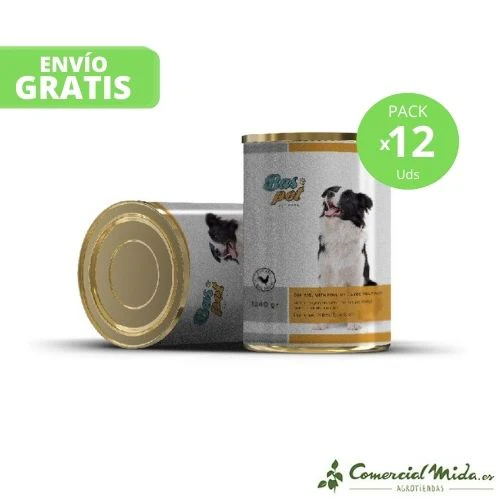 Comida húmeda con ave para perros y cachorros de todos los tamaños y razas.