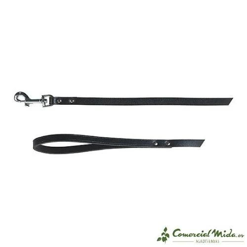La correa de cuero para perro es de color negro intenso e incluye remaches en metálico que contrastan con el color oscuro. Incluye un mosquetón típico, con muelle a presión muy fácil de ajustar. El material de la correa de perro es cuero natural de alta calidad que resiste a la presión diaria que ejerce el perro. Disponible en dos modelos a elegir el que más se adapte al tamaño de la mascota.