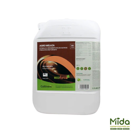 CULTIVERS Agro Melaza es una melaza líquida 100% natural, certificada para uso en agricultura ecológica (CAAE), formulada para estimular el crecimiento del cultivo y mejorar la dinámica del suelo. Su alta concentración de materia orgánica de origen vegetal (42%), junto con aminoácidos orgánicos y glicina/betaína (10%), contribuye a optimizar el metabolismo vegetal y a reducir episodios de estrés por factores externos (bióticos y abióticos). Además, favorece la actividad microbiana beneficiosa, mejora la disponibilidad de nutrientes y ayuda a incrementar la retención de agua y nutrientes, impulsando un desarrollo radicular más eficiente.