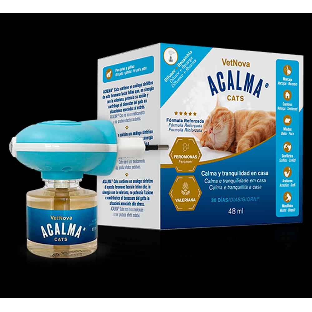 ACALMA® Cats es la elección perfecta para combatir el estrés en gatos y facilitar la adaptación a situaciones estresantes. ¡Mima a tu gato con la calma que se merece!