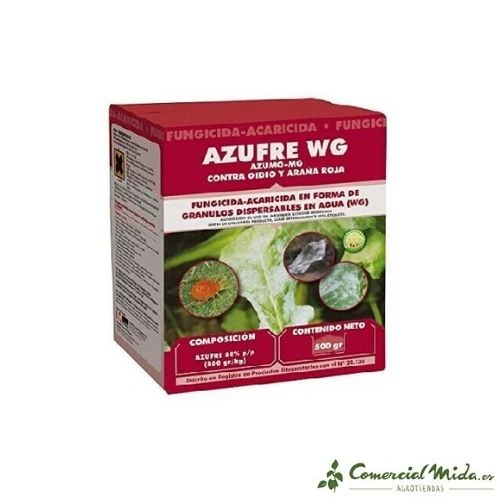 Azufre WG es un fungicida de acción curativa erradicante y preventiva perfecto para eliminar oídio y arañas rojas.