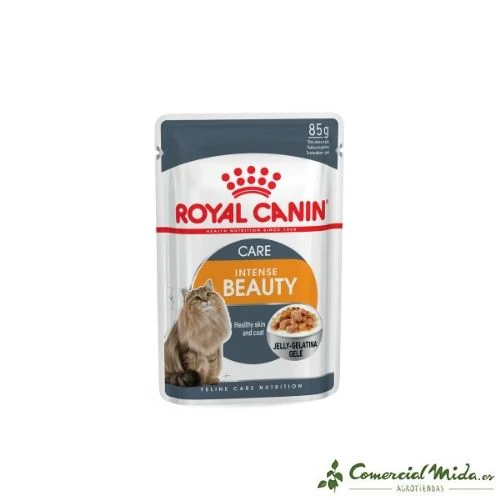 De gelatine van Royal Canin Intense Beauty is ideaal voor volwassen katten. De huid en vacht weerspiegelen de gezondheid van de kat, daarom is INTENSE BEAUTY van essentieel belang voor de vernieuwing en het onderhoud van de vacht van de kat door een breed scala aan specifieke voedingsstoffen te leveren. Het voedt de vacht en versterkt de glans dankzij een hoog gehalte aan Omega 3 en 6, vetzuren, vitamines B, biotine en zink. Dit natvoer helpt het gewicht onder controle te houden en levert alle benodigde voedingsstoffen om de vitaliteit van de kat te versterken, terwijl het helpt om op het ideale gewicht te blijven.