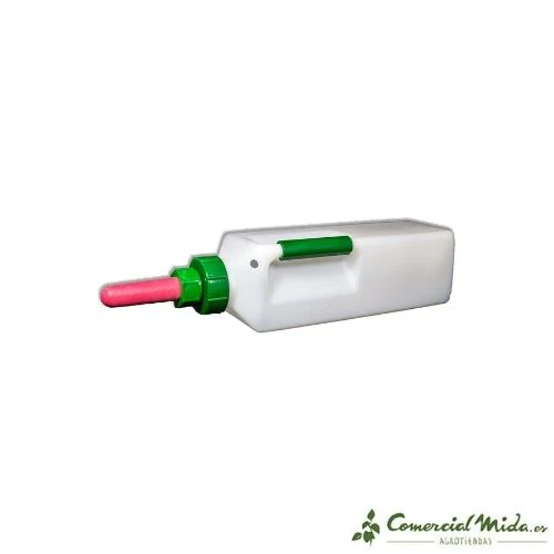 Biberón de 3 Litros con tetina de goma para administrar alimento o medicinas a terneros.