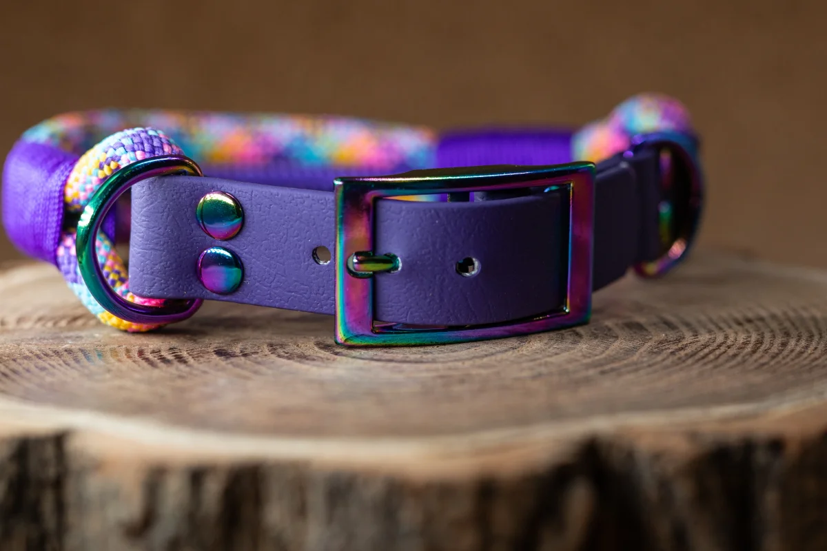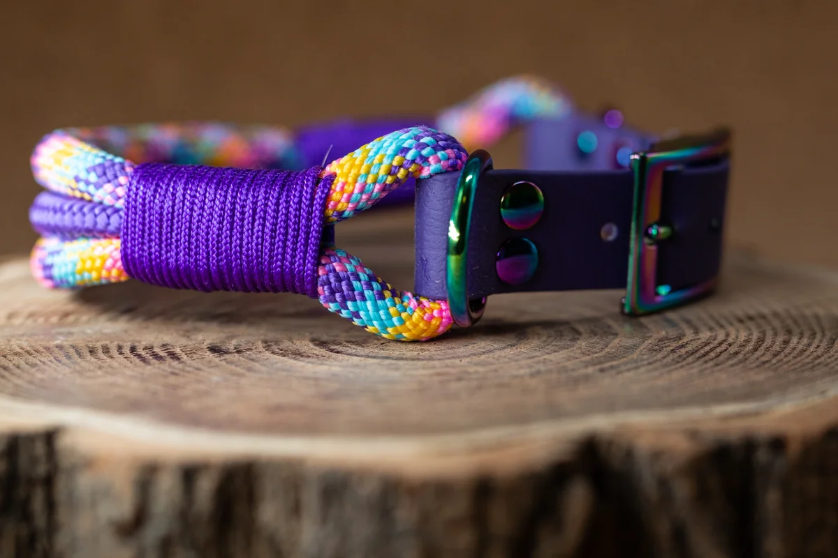 De Dolomite halsband! De meest verkochte halsband, diep paars met gekleurd PPM touw. Ook te maken met andere kleuren! Past perfect bij de hondenlijn Dolomite 😎