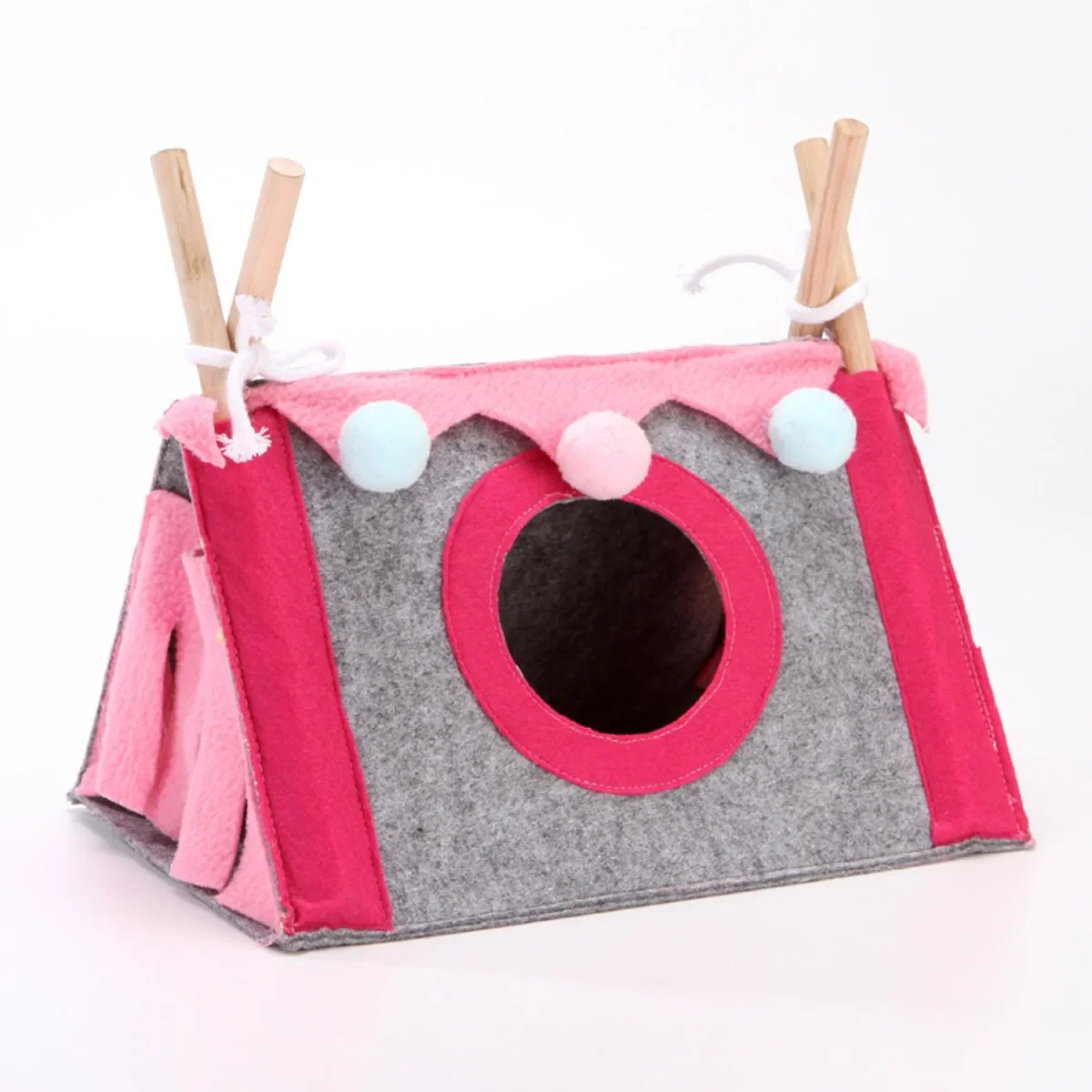 Het Hamster & Kleine Knaagdieren Tentje biedt de perfecte plek voor jouw harige vrienden om te rusten en af te koelen. Gemaakt van een combinatie van stevig hout en zachte fleecestof, biedt deze driehoekige tent zowel comfort als duurzaamheid, waardoor het een ideale nestplaats is voor hamsters, cavia’s, muisjes en andere kleine dieren.