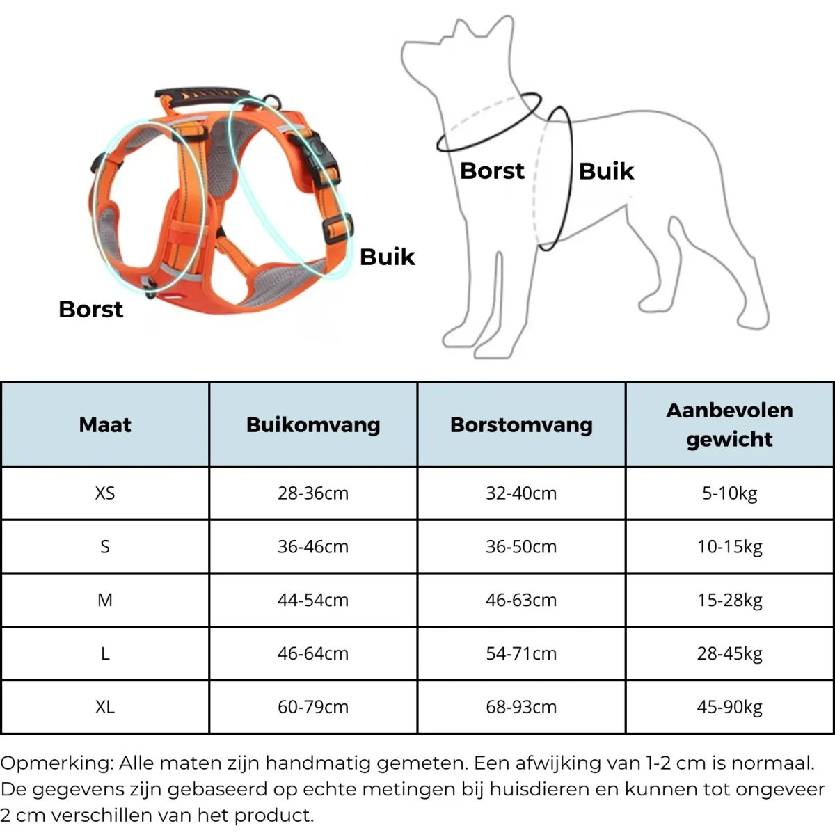 🐾 Maat: Verstelbaar voor de meeste hondenrassen