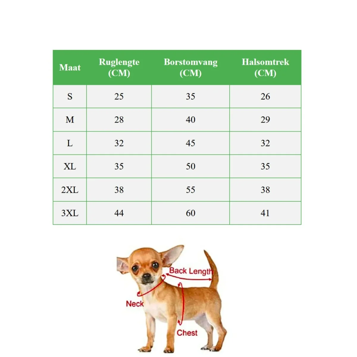 Specificaties van de waterdichte hondenjas
