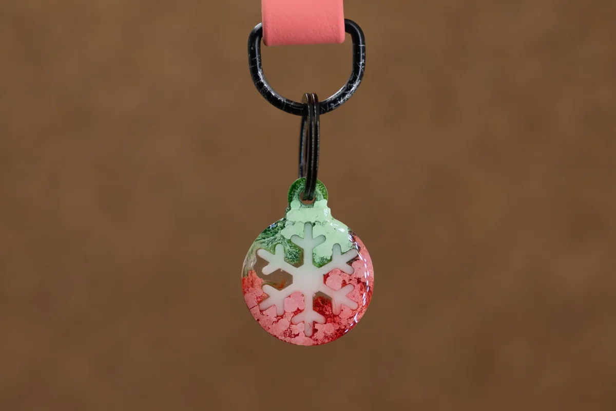 De Snowflake Eve is niet zomaar een penning: deze is vormgegeven als een klassieke kerstbal, met een unieke mix van dieprood en dennegroen. In het midden schittert een witte sneeuwvlok van glow in the dark materiaal — subtiel overdag, opvallend in het donker.