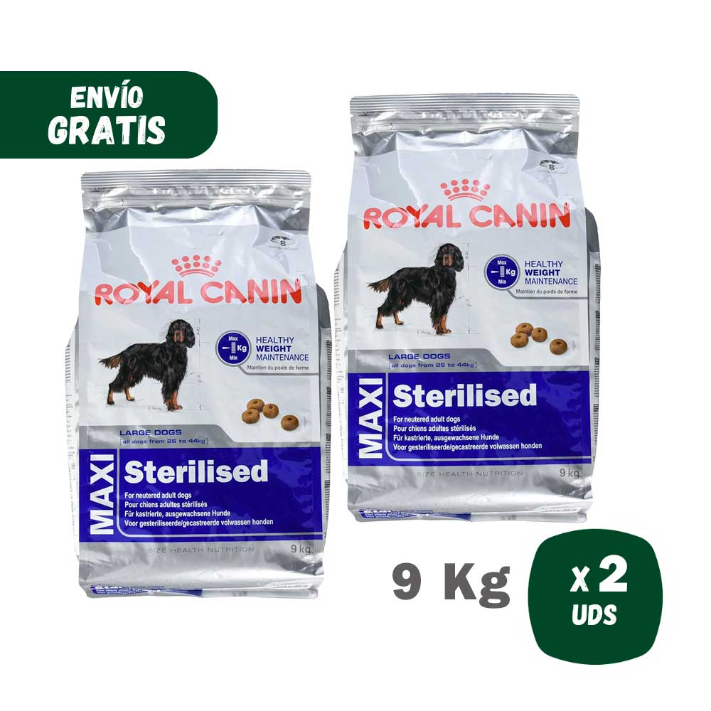 De Maxi Sterilised voeding van Royal Canin is een droogvoer dat speciaal is samengesteld voor grote hondenrassen, tussen 26 en 44 kg, die volwassen zijn en zijn gesteriliseerd. Het risico op obesitas na sterilisatie verdubbelt bij honden, omdat er een afname is in fysieke activiteit en een vertraging van de stofwisseling terwijl er een toename is in vrijwillige voedselinname. Daarom is het essentieel dat het voer dat aan het dier wordt gegeven, rekening houdt met de specifieke behoeften van deze honden. Dit voer van Royal Canin zal ervoor zorgen dat het de eetlust van de hond bevredigt zonder een gram aan zijn gewicht toe te voegen, omdat proteïnen erg belangrijk zijn, die in deze formule zijn aangepast aan de behoeften van het dier en daarom zeer verteerbaar zijn, waardoor het dier zijn spiermassa behoudt en minder calorieën en minder vetten inneemt.