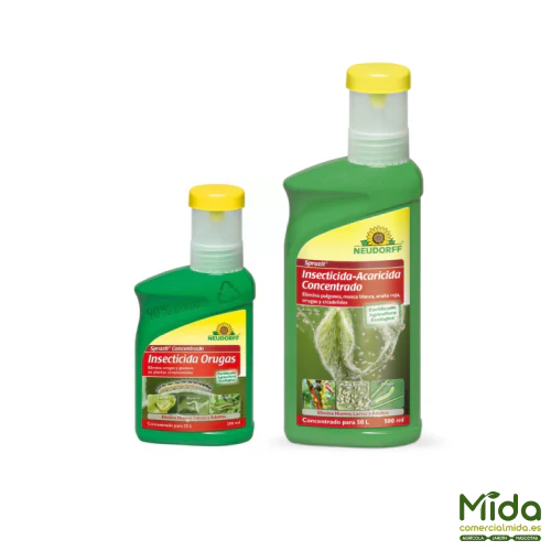 El insecticida acaricida SPRUZIT CONCENTRADO control de pulgones, mosca blanca, ácaros, araña roja, orugas y otros cicadélidos. Este insecticida actúa por contacto provocando la parálisis del insecto y posterior desaparición. Es utilizado para combatir plagas en hogar y jardín dónde existan plantas ornamentales y/o leñosas. Asimismo, su aplicación es fácil y no dispone de plazo de seguridad. Puede aplicarse también por la cara interior de las hojas.