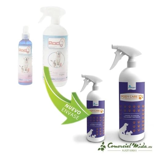 Pody Care Spray de Bioplagen es una solución líquida con acción insecticida lista para usar en ambientes con mascotas. Actúa por contacto e ingestión. Tiene un gran efecto de choque y residual. Gracias a su fórmula sinergizada se evitan las resistencias, es ideal para pequeños animales. Elimina de manera eficaz toda clase de insectos voladores como moscas, avispas, mosquitos, moscardas, etc. También es muy eficaz contra pulgas, garrapatas, piojos, etc. Además, gracias a su principio activo, la Tetrametrina este insecticida proporciona un excepcional efecto de volteo. Libre de dejar manchas.