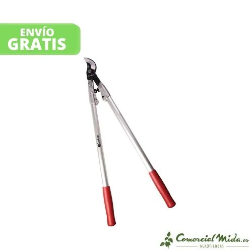 Tijera de poda a dos manos de corte tipo bypass ideal para ramas gruesas.