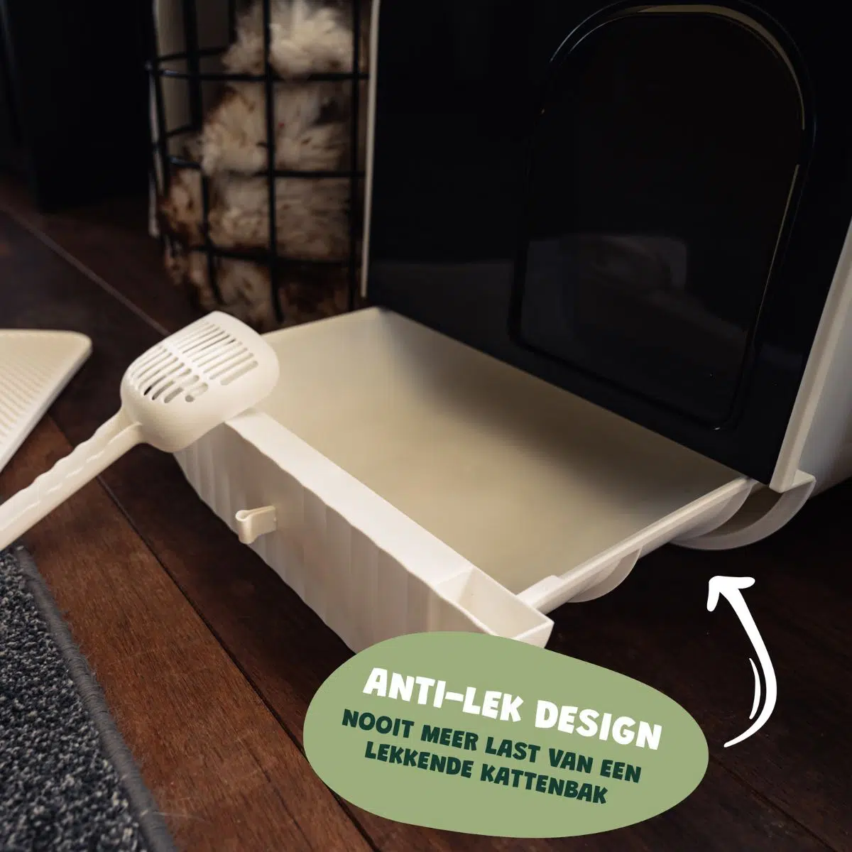 Houdt voortaan jouw huis schoon met deze witte Design Kattenbak van De Blaffende Kat! Deze gesloten kattenbak beschikt over onder andere een uitneembare lade, uitloopmat en grindschepje waardoor jij voortaan je huis en handen schoon kan houden.