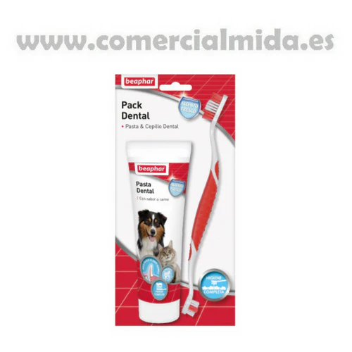 Di adiós a la placa y el sarro de los dientes de tu mascota con el pack de limpieza dental de Beaphar compuesto por un tubo de pasta dentífrica con sabor a carne y un cepillo de doble mango adaptado a las bocas de los perros de todas las razas y tamaños. Con la solución antiplaca la acumulación de bacterias y ciertas proteínas de la comida ingerida por tu perro causará mal olor y suciedad en la boca de tu animal de compañía. Protege la dentadura de tu amigo peludo usando la pasta dentífrica de Beaphar que incluye enzimas para hacer frente a las bacterias malas.