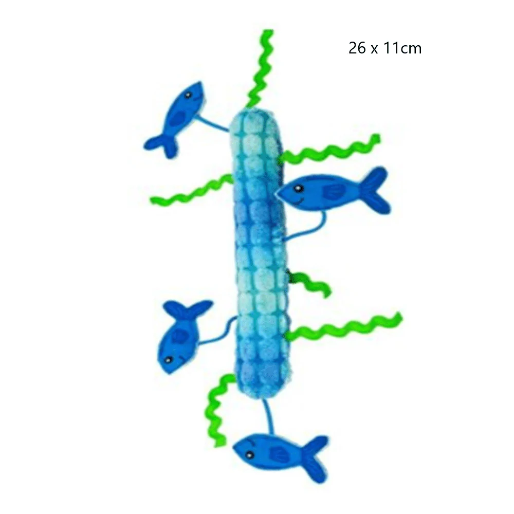 Dit interactieve speeltje biedt ultieme multi-sensorische verrijking voor jouw kat. De lange, zachte speelstok stimuleert gezond worstelgedrag en achterpoottrappen, terwijl de elastische slierten met glimmende visjes zorgen voor een speels “onderwateravontuur”.