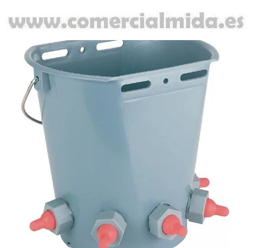 De 8L tepelkubus met 5 uitgangen is ideaal voor gelijktijdig lammeren voeden of andere dieren met vergelijkbare kenmerken, dankzij zijn lichtheid en weerstand. Ref: 1520.