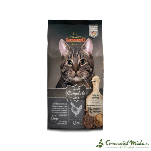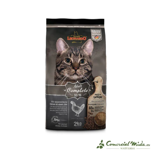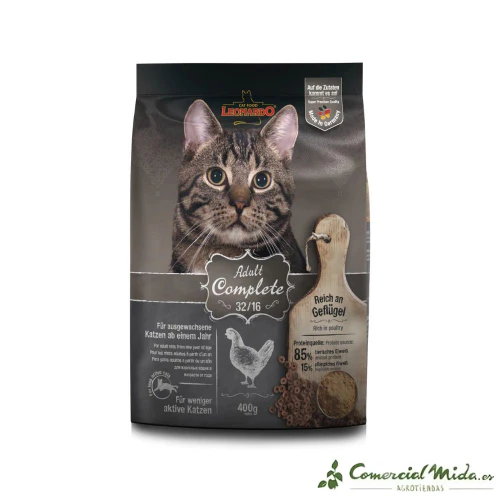 LEONARDO Adult Complete 32/16 es la opción perfecta para proporcionar una dieta equilibrada y sabrosa a tu gato adulto, ayudando a mantener su vitalidad y salud, especialmente si tiene bajos niveles de actividad.