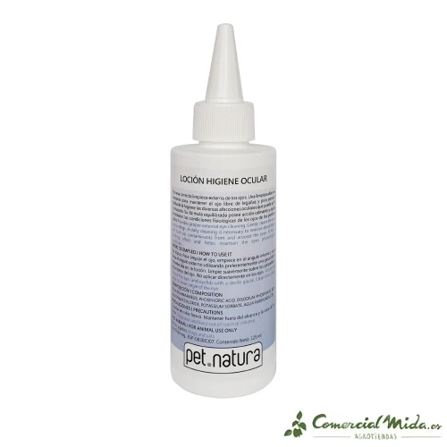El limpiador de ojos Loción Higiene Ocular de Petnatura para perros y gatos es un producto para la higiene antiséptica ocular que ofrece una limpieza externa del ojo y ayuda a calmar la irritación proporcionando cuidado y bienestar a la mascota. Para que la higiene del animal sea óptima es necesario realizar una limpieza de los ojos. Gracias a la fórmula suave y equilibrada a base de Hamamelis Virginiana Water, este producto posee acción calmante y ayudará a mantener las condiciones fisiológicas oculares naturales del animal.
