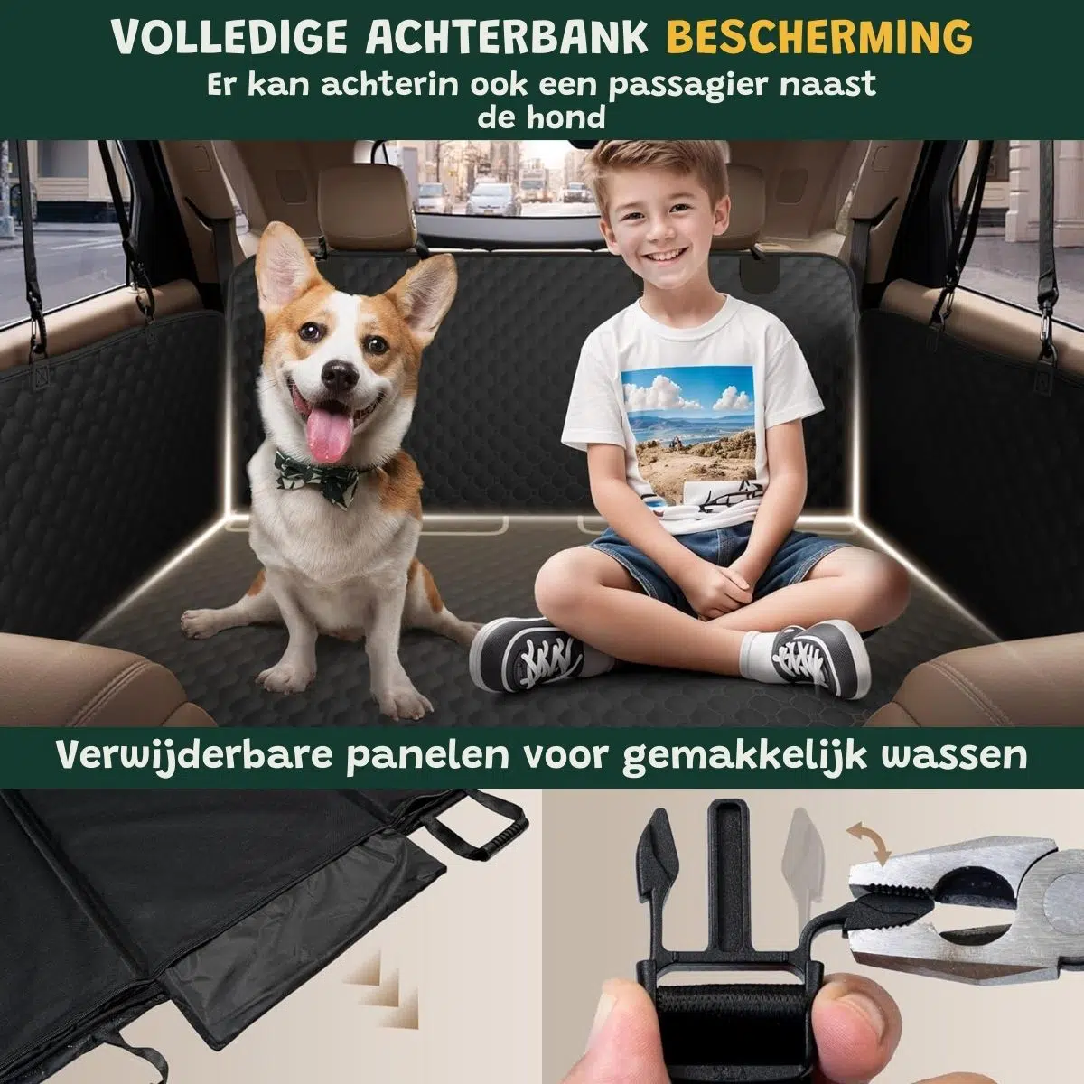 - Beschermt je achterbank tegen vuil, krassen en haren.