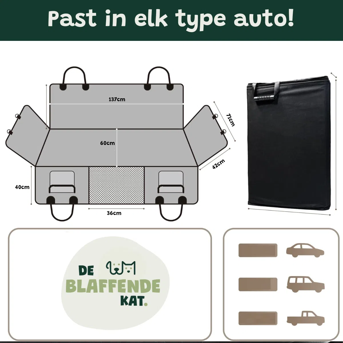 - Beschermt je achterbank tegen vuil, krassen en haren.