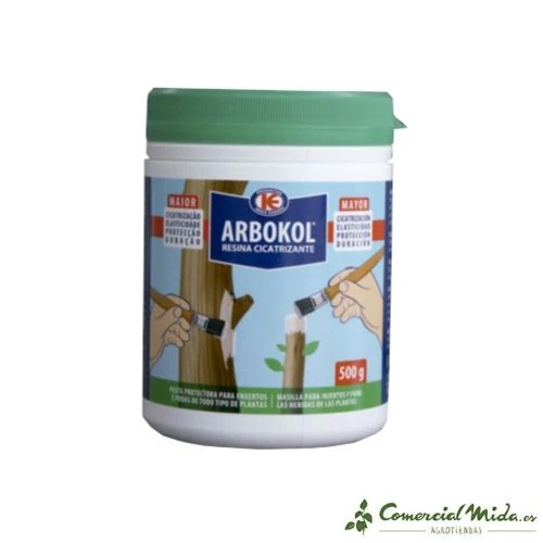 Arbokol es la solución en forma de resina para tratar podas, injertos y heridas en cualquier planta, árbol o arbustro. ARBOKOL RESINA genera una capa con propiedades elásticas y porosas para curar y evitar enfermedades a las plantas y apoyando el crecimiento de las plantas ya que permite que ésta transpire correctamente. ¿Conoces el objetivo de los injertos? Si estás pensando en aplicar injertos sobre los árboles frutales u ornamentales elige la masilla Arbokol, la resina más demandada del mercado.