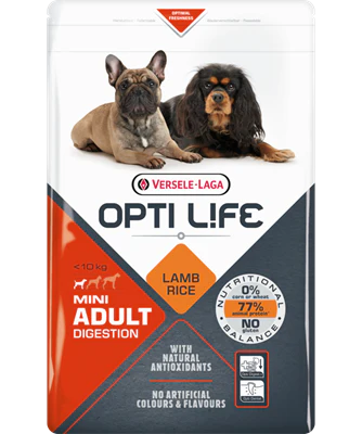 Opti Life Adult Digestion Mini is een perfect nutritioneel uitgebalanceerde formule voor kleine rassen (<10 kg), op basis van lam & rijst, uitermate geschikt voor jouw hond met een gevoelige spijsvertering.