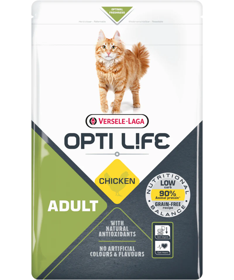 Opti Life Adult is een perfect nutritioneel uitgebalanceerde formule voor volwassen katten op basis van kip, laag in koolhydraten en granenvrij. De voeding is speciaal ontwikkeld om jouw kat in optimale conditie te brengen en te houden.