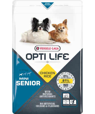 Opti Life Senior Mini is een perfect nutritioneel uitgebalanceerde formule voor kleine rassen (<10 kg),op basis van kip & rijst, waarmee jouw hond gezond en vitaal oud zal worden.