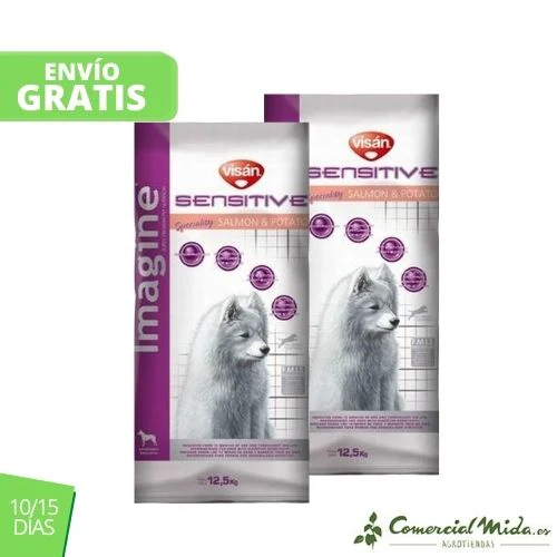 IMAGINE ADULT SENSITIVE SALMON & PATATA está elaborado con un alto porcentaje de salmón que lo hace fácilmente digestivo para perros sensibles con dificultades digestivas.